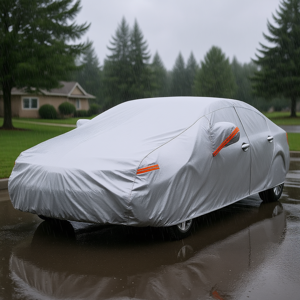 ผ้าคลุมรถกันน้ำทุกสภาพอากาศสำหรับรถซีดาน 186 193 นิ้วป้องกันรังสียูวีผ้าคลุมรถกลางแจ้งรุ่น H3
