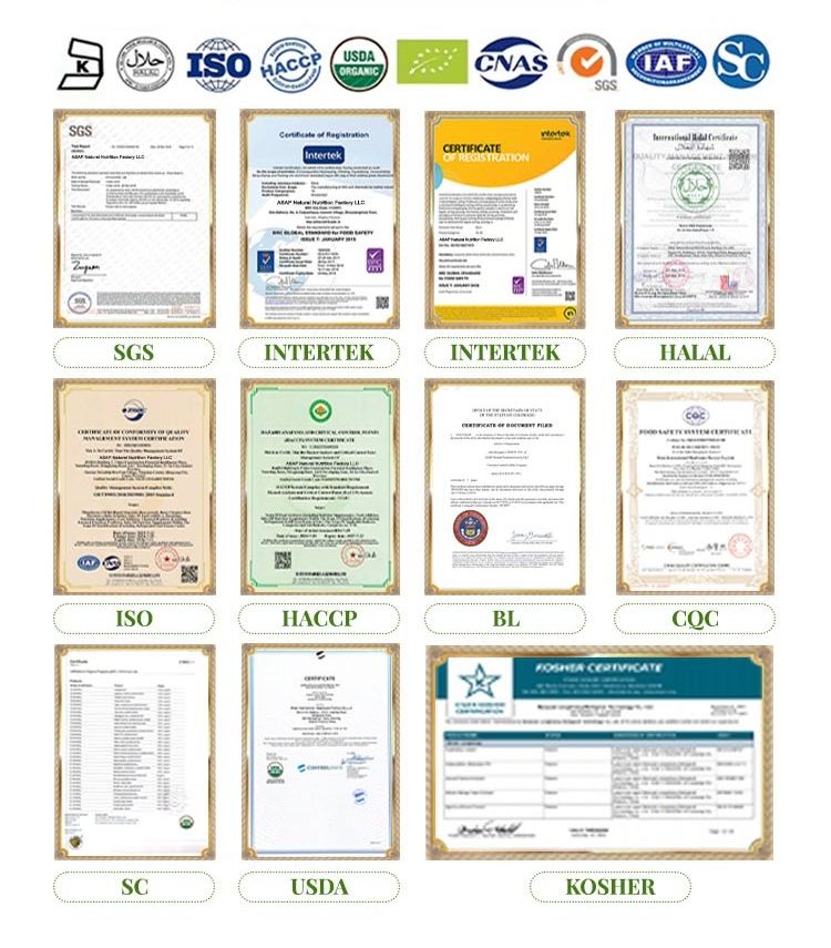 การรับรอง:ISO9001/ฮาลาล/โคเชอร์