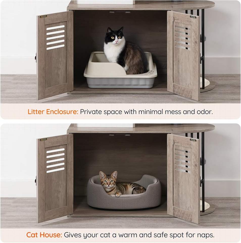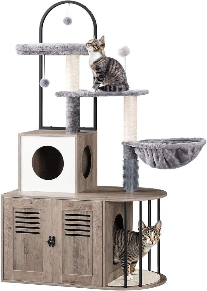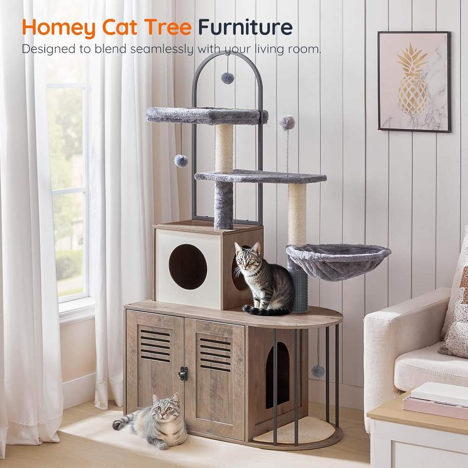 คอนโดแมวอเนกประสงค์แบบทันสมัย ขนาด 31.5 นิ้ว พร้อมกระบะทรายซ่อนในตัว ผลิตจากวัสดุรักษ์โลก สำหรับแมวในบ้าน พร้อมเสาข่วนทำจากป่านศรนารายณ์