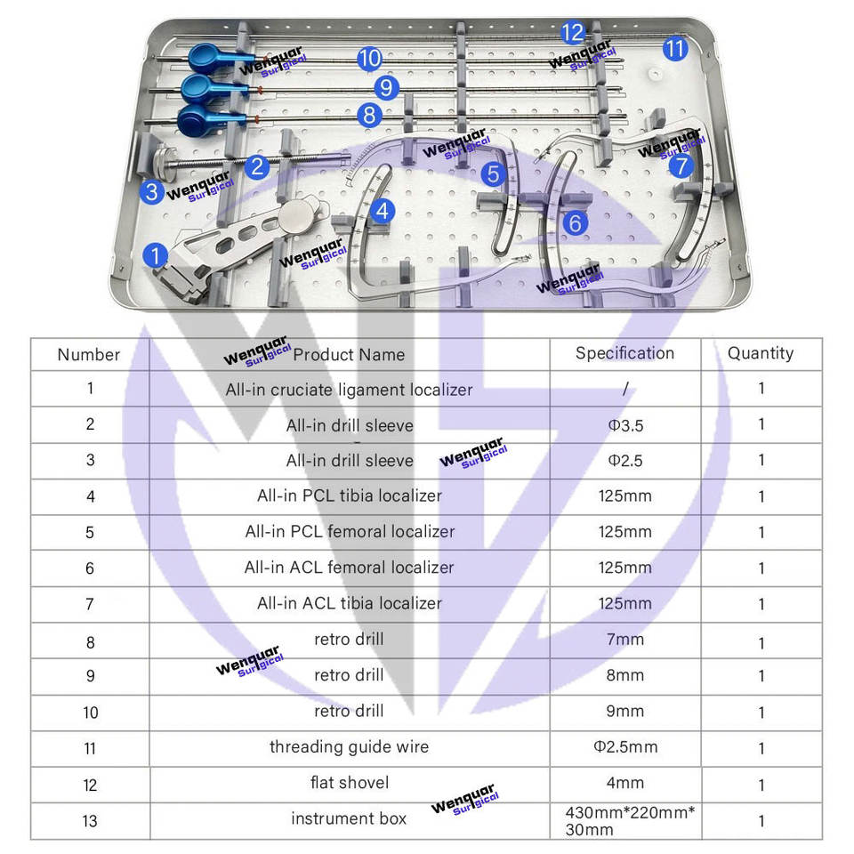 ชุดเครื่องมือ ACL/PCL ออลอินวัน สำหรับซ่อมแซมและสร้างขึ้นใหม่เส้นเอ็น ทำจากสแตนเลสเกรดผ่าตัด ผลิตโดยโรงงานโดยตรง เวนควาร์