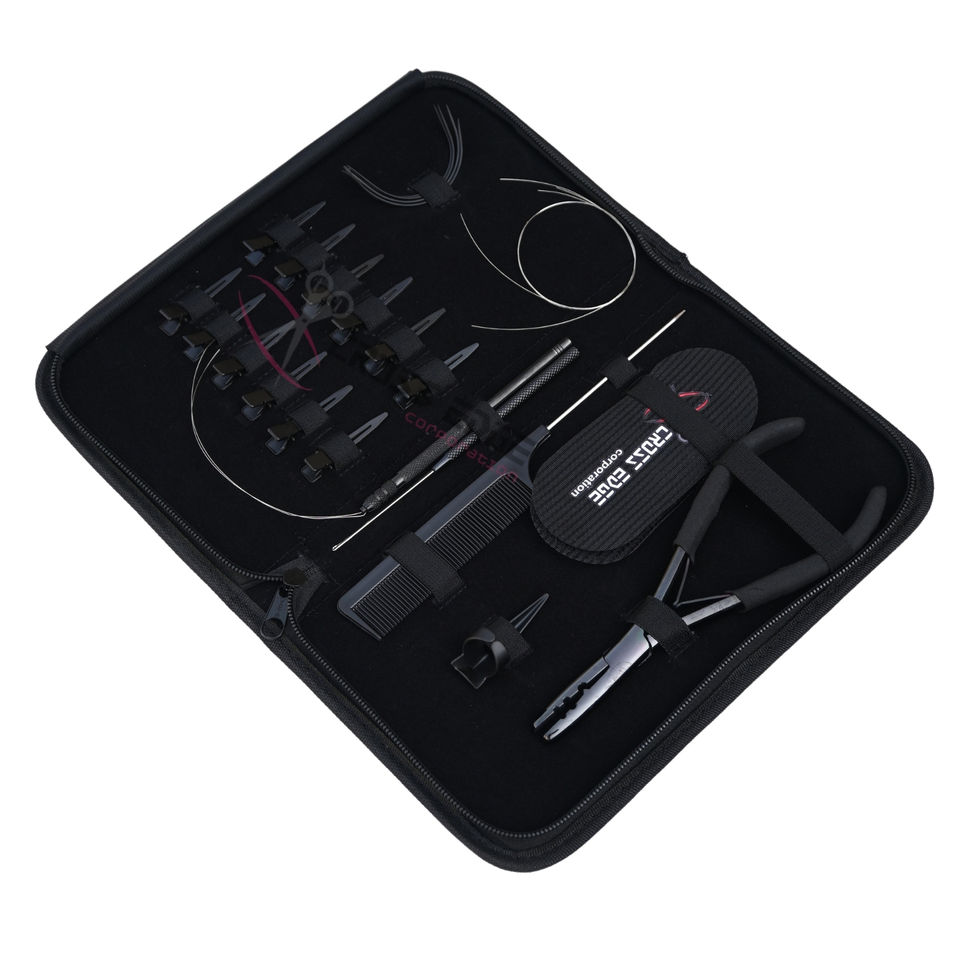 ชุดเครื่องมือต่อผมสีดำแบบครบวงจร พร้อมขนาด 7 นิ้ว 2 รู