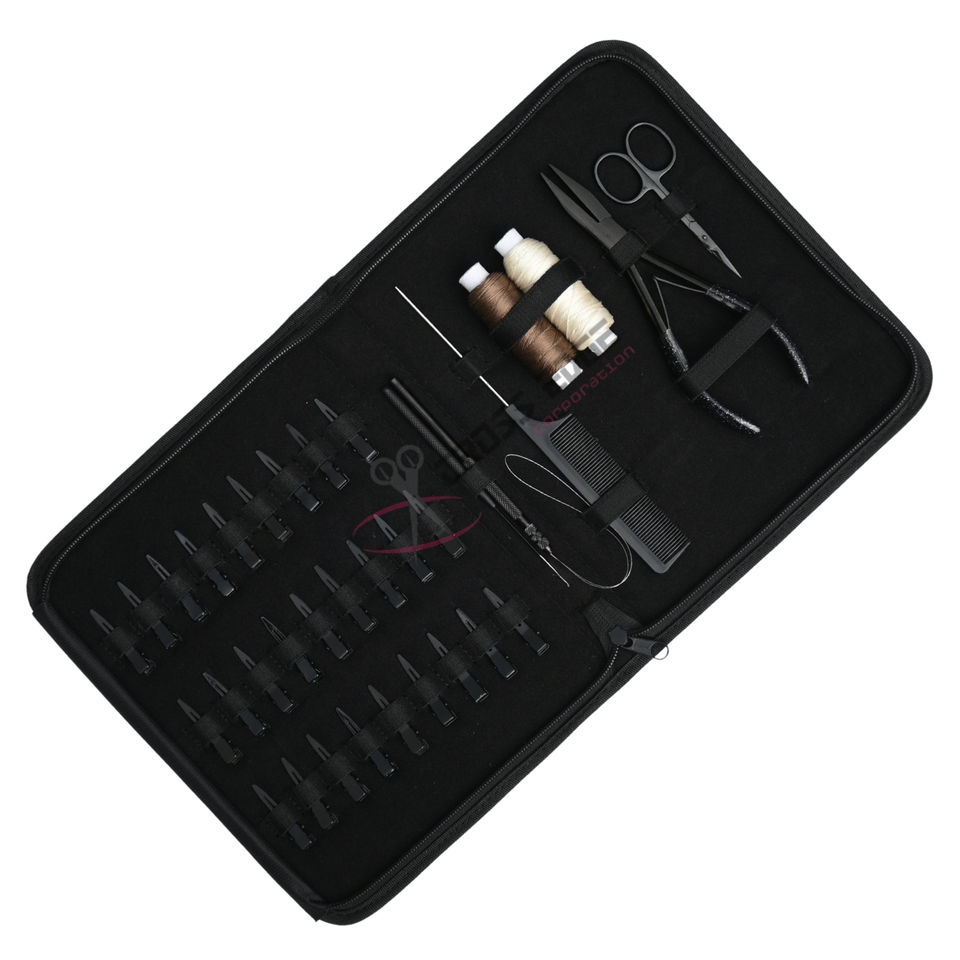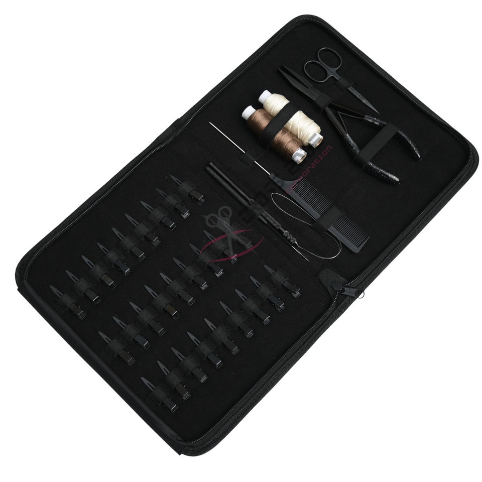 ชุดเครื่องมือต่อผมสีดำแบบครบวงจร พร้อมคีมหนีบแบบแบน