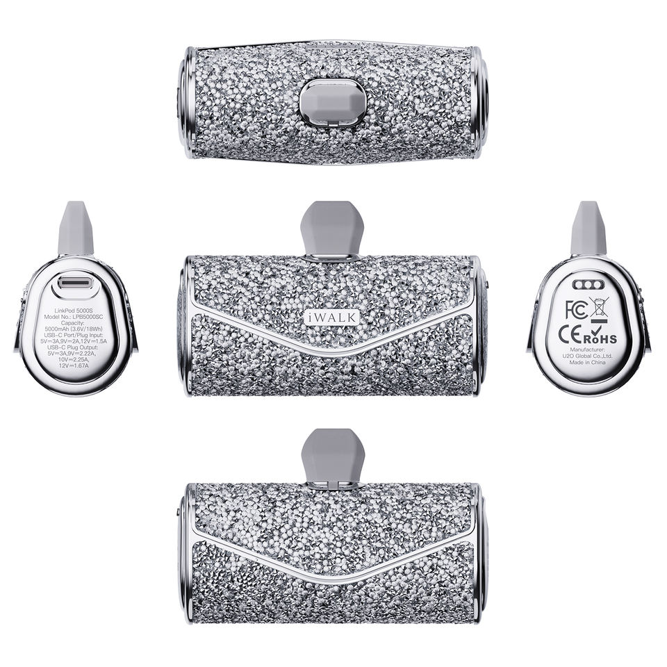All-in-One Fashion Power Bank 5000mAh 22.5W Fast Charge Lipstick Size with Dual Recharging Methods Sparkling Design