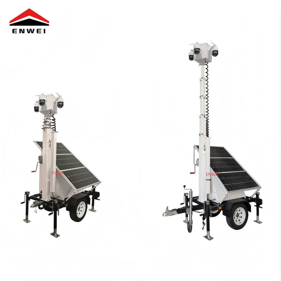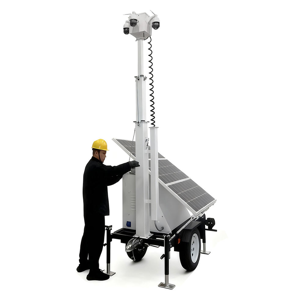 รถพ่วงพลังงานแสงอาทิตย์อเนกประสงค์พร้อมระบบกล้องวงจรปิด 4G สำหรับการตรวจสอบระยะไกลในไซต์ก่อสร้าง