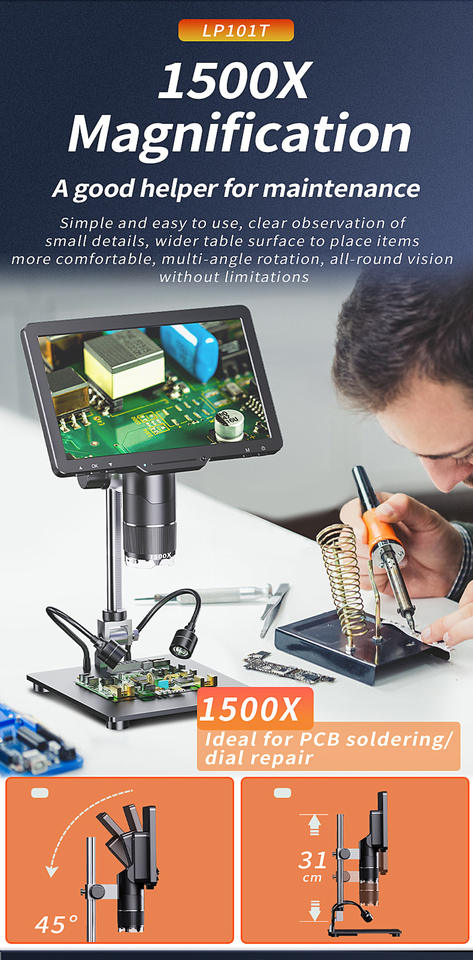 กล้องจุลทรรศน์ดิจิตอลอเนกประสงค์แบบออลอินวัน รุ่นใหม่ เลนส์สามตัว หน้าจอ IPS ความละเอียดสูงขนาด 10.1 นิ้ว สำหรับซ่อมโทรศัพท์มือถือ