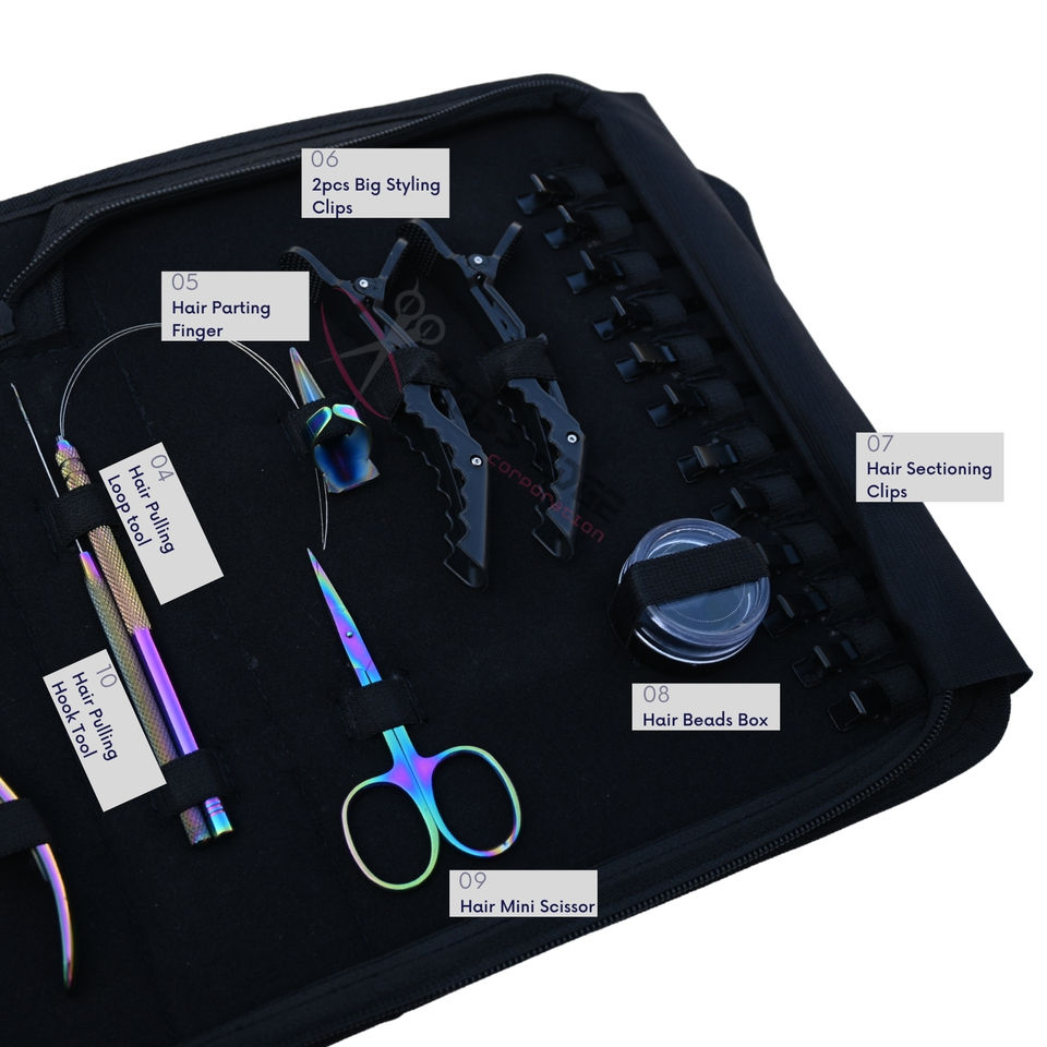 ชุดต่อผมสไตลิสต์ พร้อมเครื่องมือถอดลูกปัด ตะขอเกี่ยวผม และกิ๊บหนีบผม