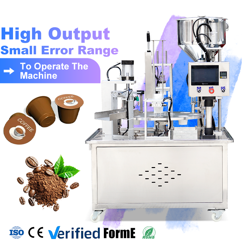 สายการผลิตโรตารี่แบบออลอินวันสำหรับ K-Cup: เครื่องบรรจุแคปซูลกาแฟ/อุปกรณ์ (ระบบชั่งผง + ปิดผนึกด้วยความร้อน + ระบบอัตโนมัติ)