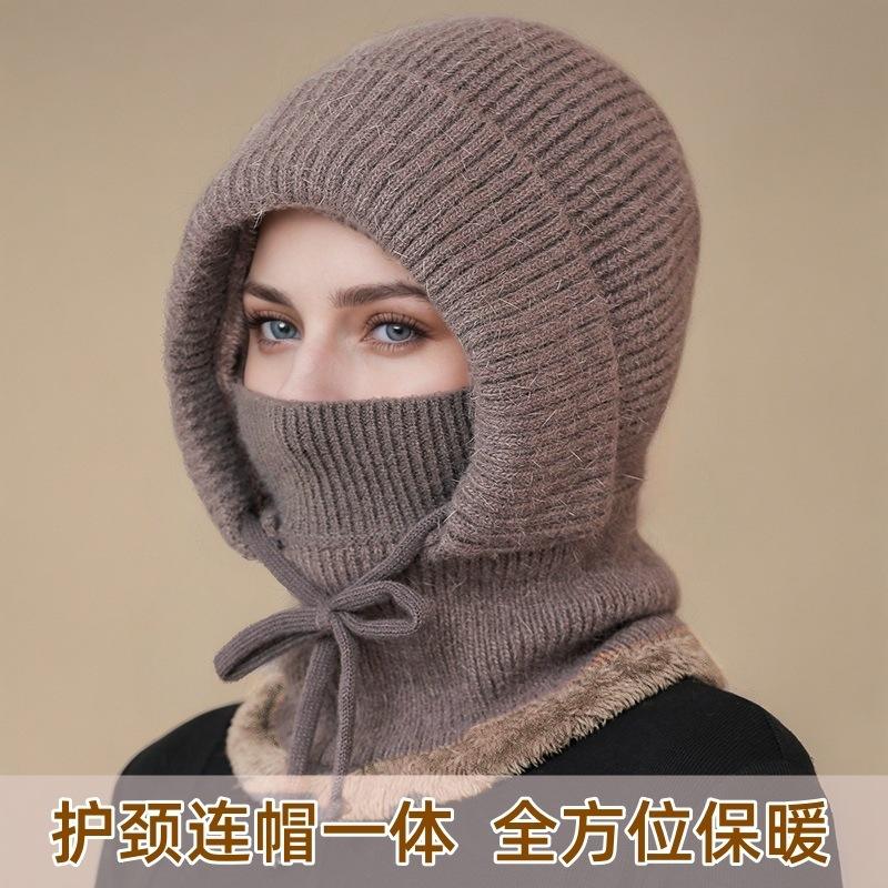 หมวกไหมพรมถักสำหรับปั่นจักรยานในฤดูหนาวแบบออลอินวัน พร้อมผ้าพันคอและหน้ากาก บุขนแกะ อุ่น กันลม สำหรับกิจกรรมกลางแจ้งของคุณแม่