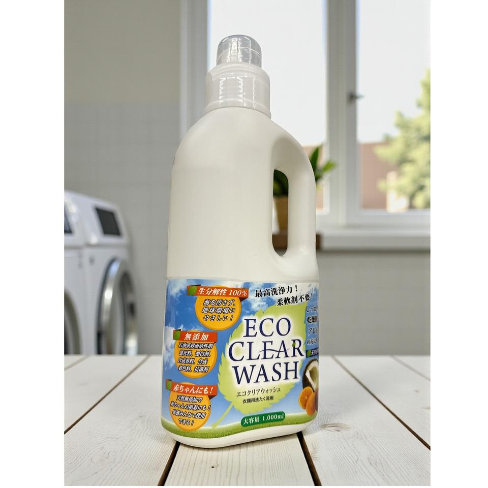 น้ำยาซักผ้าออลอินวันเพื่อผ้าขาวสะอาดฟูฟ่อง! ไม่มีสารลดแรงตึงผิวสังเคราะห์ที่ได้จากน้ำมันปิโตรเลียม อีโค เคลียร์ วอช