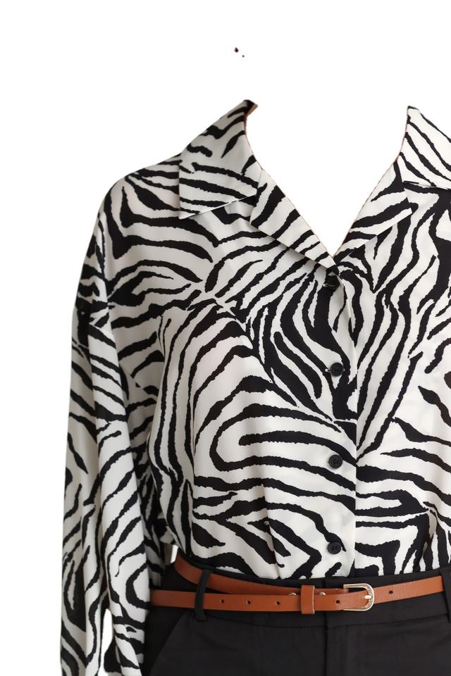 เสื้อเชิ้ตผ้าซาตินคอวีแขนยาวลายม้าลายสำหรับผู้หญิง ทรงหลวม ไซส์ใหญ่ ใส่สบายในฤดูร้อน รุ่นปี 2026 เป็นมิตรต่อสิ่งแวดล้อม