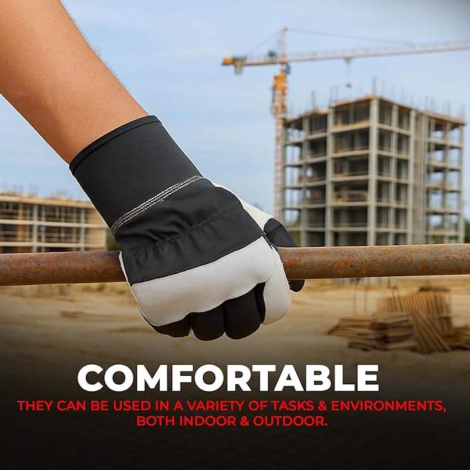 ถุงมือทำงานหนังแพะอเนกประสงค์ถุงมือป้องกันมือเพื่อการปกป้องสูงสุดทนทานและใส่สบาย
