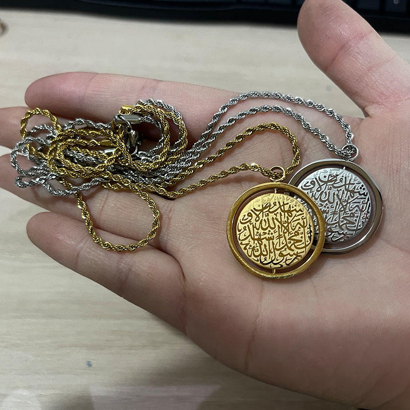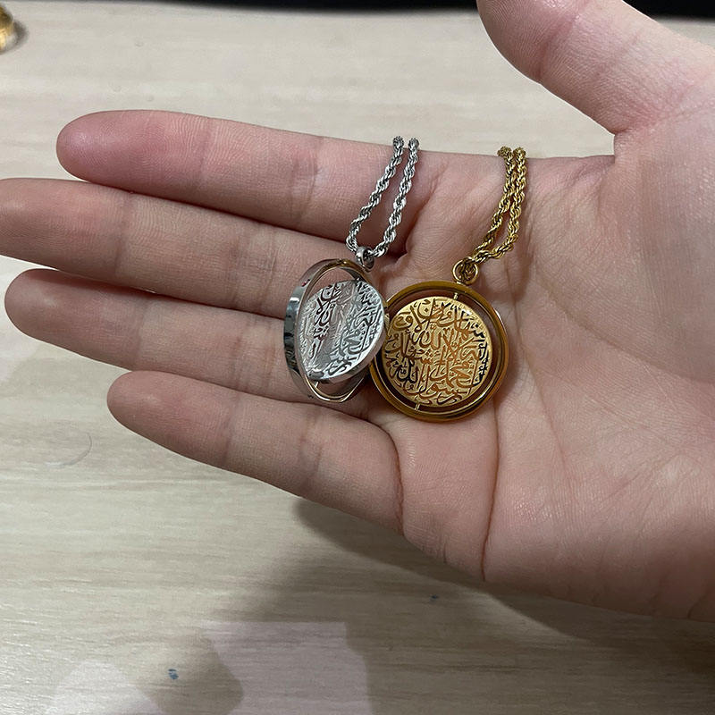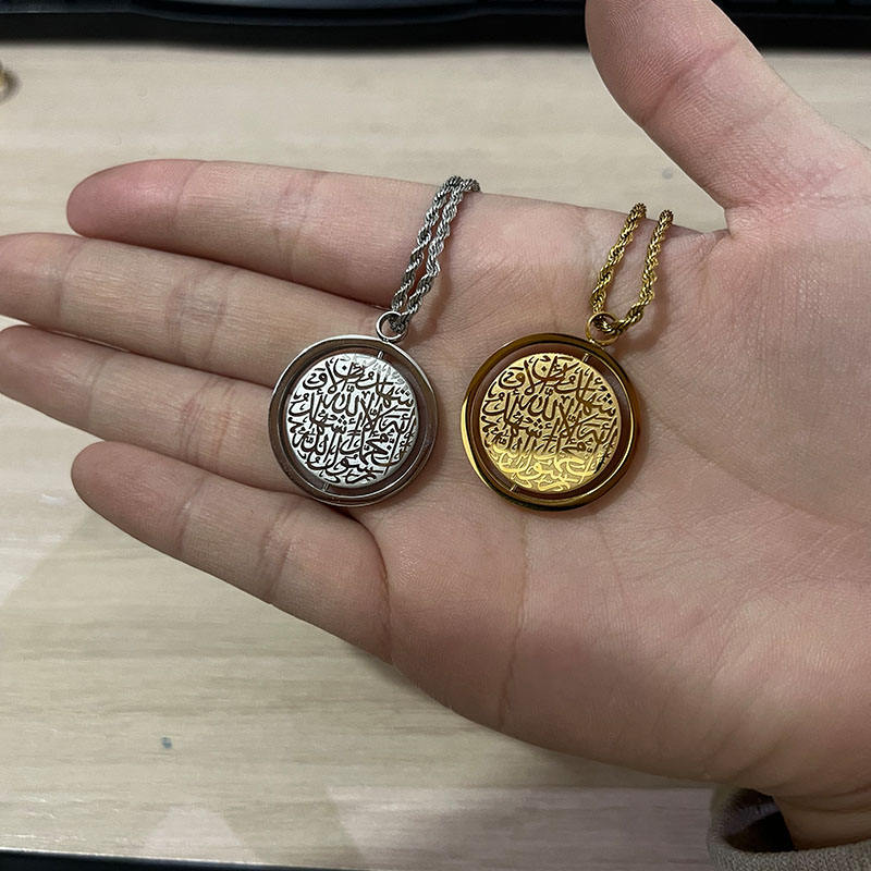 สร้อยคอแฟชั่นลายอักษรวิจิตรศิลป์อิสลามแบบอาหรับ อัลลอฮ์ ชะฮาดะฮ์ อีด ทำจากสแตนเลสสตีล กันน้ำ สำหรับผู้หญิง