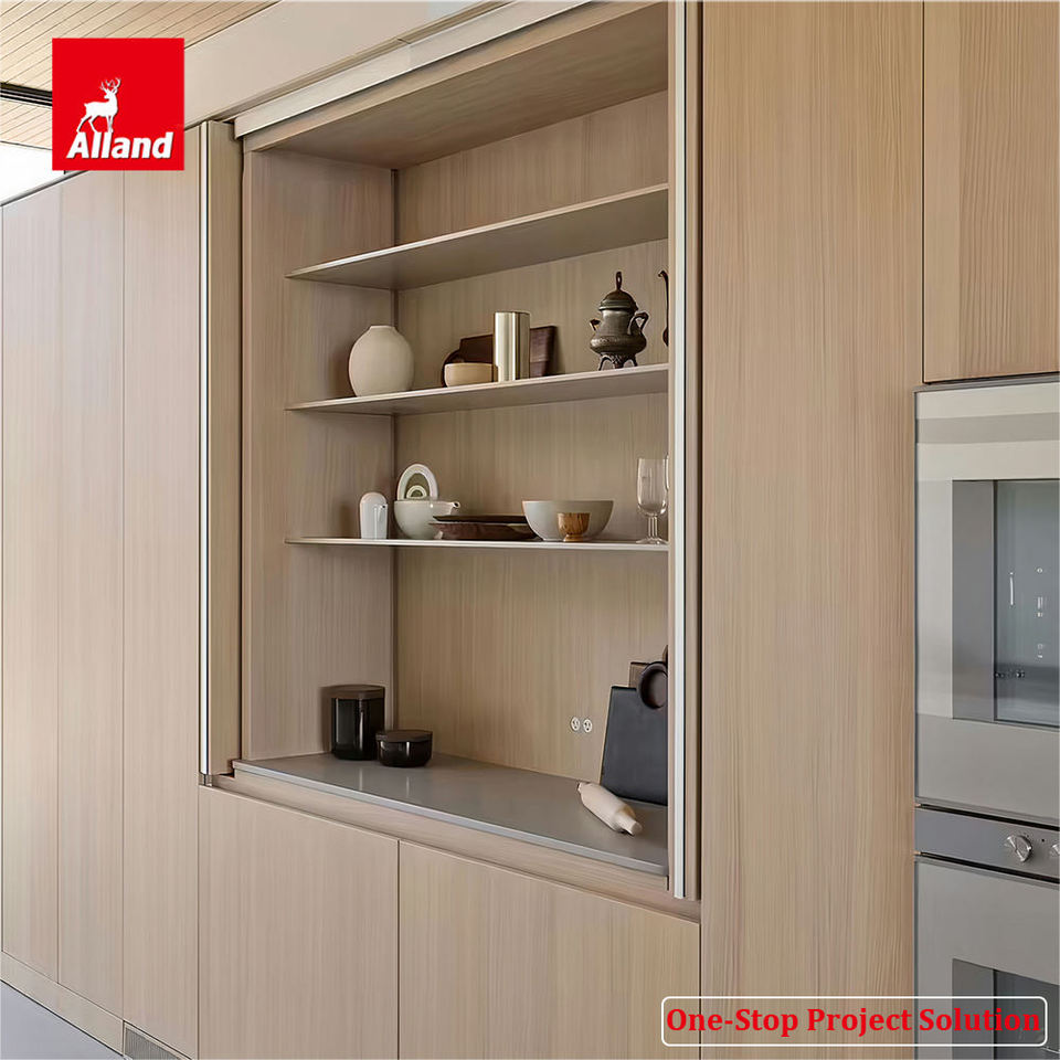 Alland เคาน์เตอร์และตู้ระบบบานเลื่อนไม้โอ๊คสองชั้นแบบสัมผัสและไอเดียตู้สำหรับห้องครัว