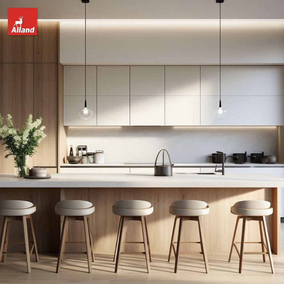 Alland ชุดที่สมบูรณ์ไม้อัดทะเลหลายชั้นเป็นมิตรกับสิ่งแวดล้อมกันน้ำห้องครัวยุโรปที่ทันสมัยรับประทานอาหารห้องเก็บไวน์