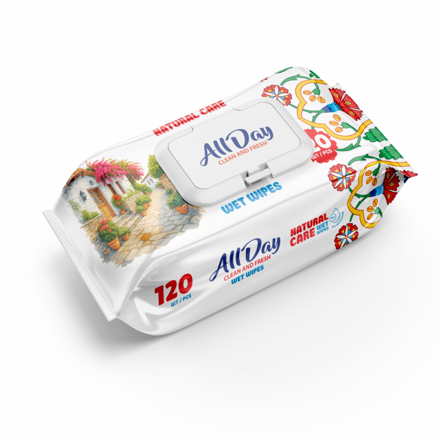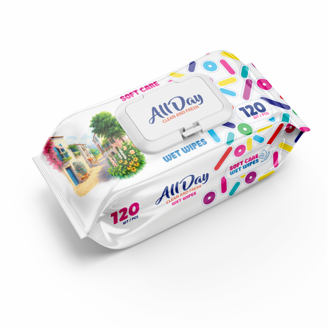 ผ้าเช็ดทำความสะอาดออลเดย์ อีโค สูตรอ่อนโยน 120 แผ่น สำหรับทำความสะอาดและสุขอนามัยประจำวัน ขายส่ง