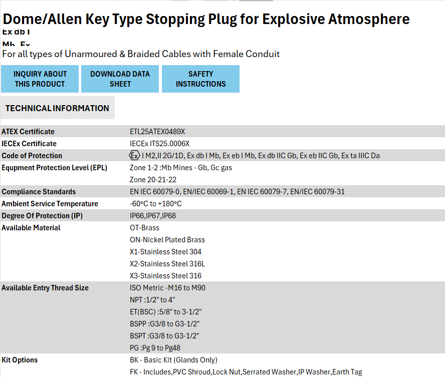 ชื่อผลิตภัณฑ์:ปลั๊กหยุดชนิดกุญแจอัลเลน