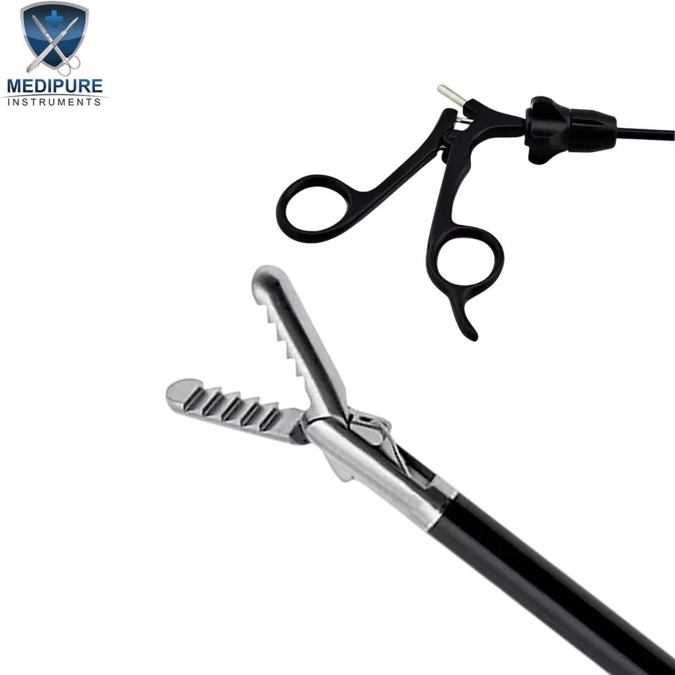 คีมจับแบบอัลลิเกเตอร์ ปากคู่ ขนาด 5 มม. ยาว 45 ซม. คีมจับแบบอัลลิเกเตอร์สำหรับการผ่าตัดผ่านกล้องทางนรีเวช ยี่ห้อ MEDIPURE INSTRUMENTS