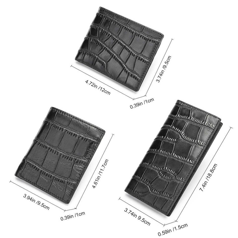 กระเป๋าสตางค์หนังแท้สำหรับผู้ชายมีช่องใส่บัตรเครดิตหนังแท้ลายจระเข้พับบาง