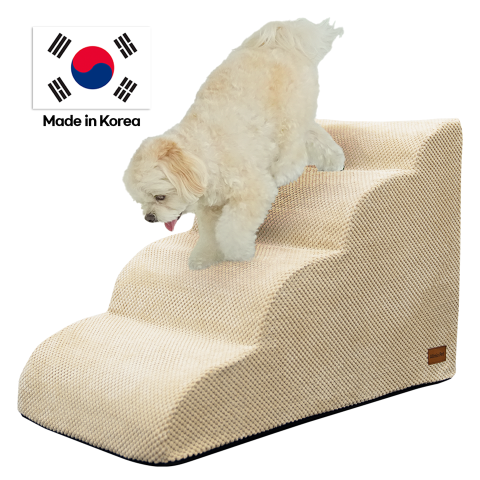 บันไดสัตว์เลี้ยงสี่ขั้น [AllmioPet] สีเบจ รุ่น AMP 4 BE ดีไซน์ผ้าคลาวด์ สำหรับสัตว์เลี้ยงขึ้นโซฟา เตียง ภายในบ้าน เหมาะสำหรับสุนัขและแมว