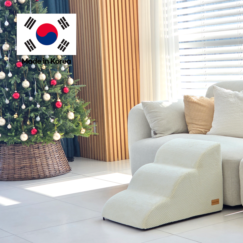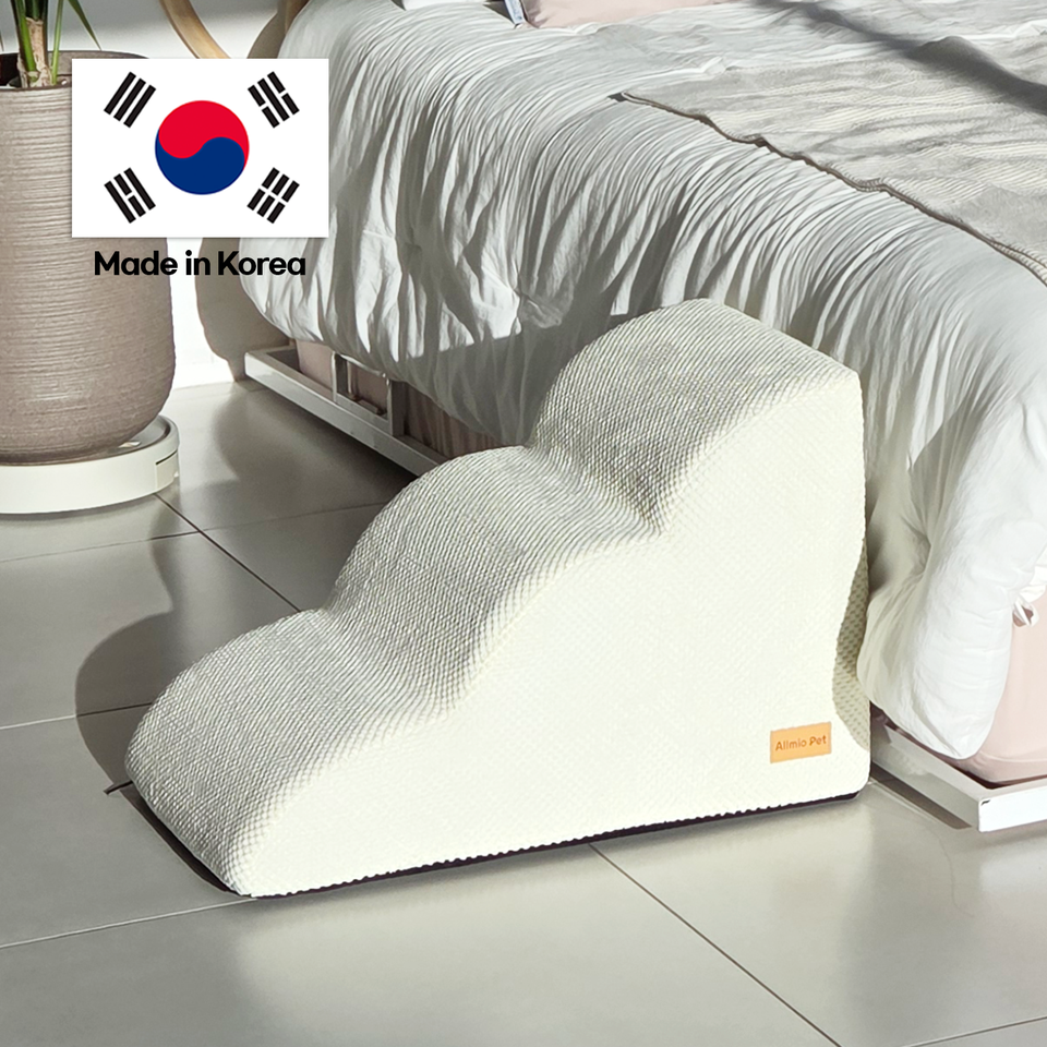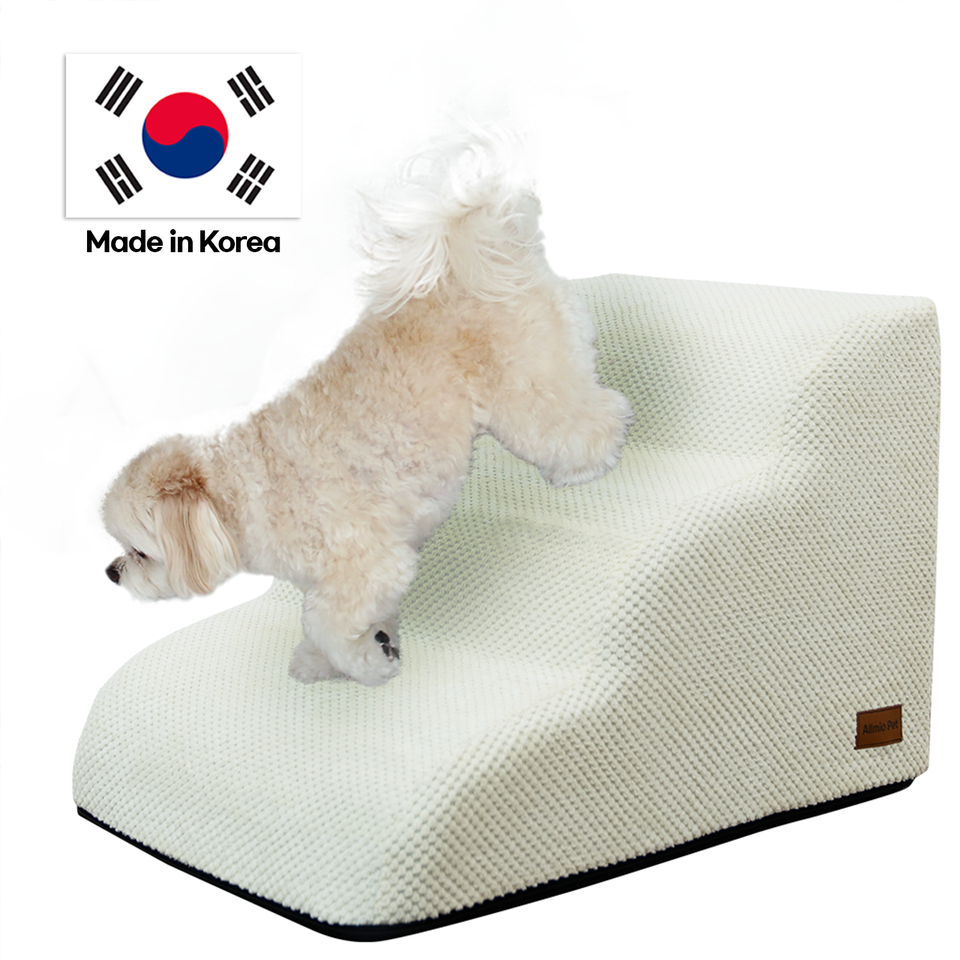 บันไดสำหรับสัตว์เลี้ยง [AllmioPet] รุ่น Joint Care 3 ขั้น สีงาช้าง AMP 3 IV สำหรับใช้ภายในบ้าน ผ้าหุ้มกันลื่น ถอดซักได้ สำหรับสุนัขและแมวขนาดเล็ก ดีไซน์หรูหรา