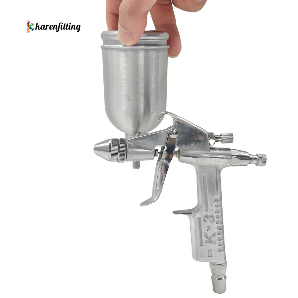 ปืนพ่นสีรถยนต์แบบอะลูมิเนียมอัลลอยด์ ระบบพ่นละเอียด พร้อมถังป้อนสีแบบแรงโน้มถ่วง หัวฉีดประหยัดสี สามารถปรับแต่งได้ตามแบบ OEM