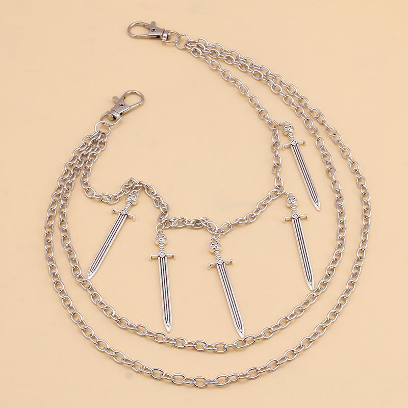 โซ่คล้องคออัลลอยยาวดาบสายโซ่พังค์สำหรับผู้หญิงพวงกุญแจกางเกงยีนส์ egirl eboy ฮาราจูกุกรันจ์เครื่องประดับโซ่ประดับร่างกาย