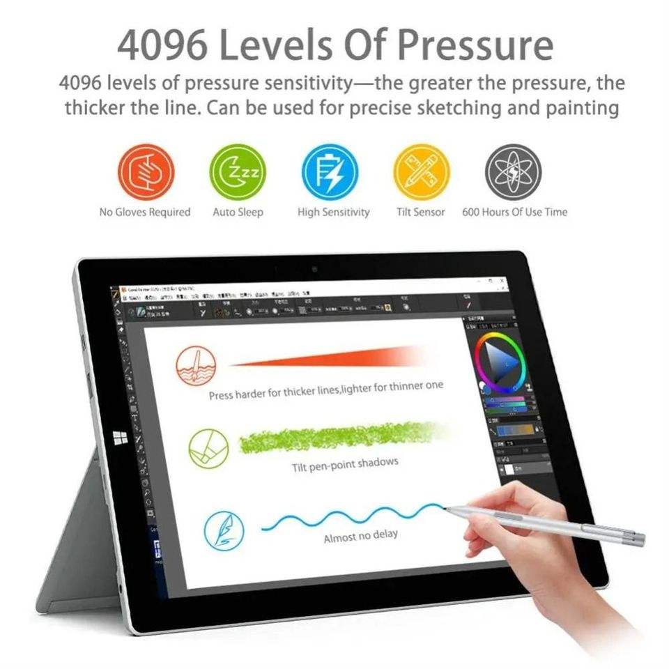 ปากกาสไตลัสอัลลอยด์ สำหรับ Microsoft Surface Go Pro 7/6/5/4/3/Book รองรับแรงกด 4096 ระดับ ป้องกันการสัมผัสโดยฝ่ามือ หน้าจอสัมผัสแบบแอคทีฟ ระบบแม่เหล็กไฟฟ้า