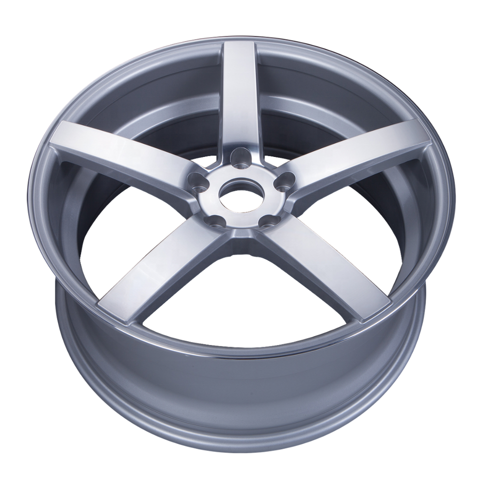 ล้อแม็กซ์อัลลอยด์สีเงินแบบห้าก้าน ขัดเงาเต็มวง พร้อมการรับประกันโครงสร้างตลอดอายุการใช้งาน