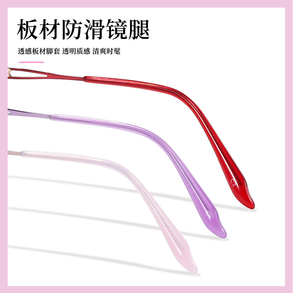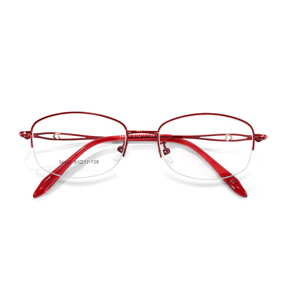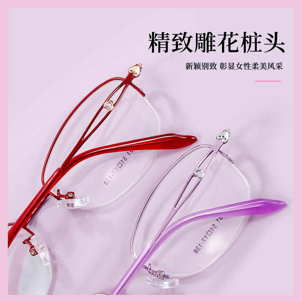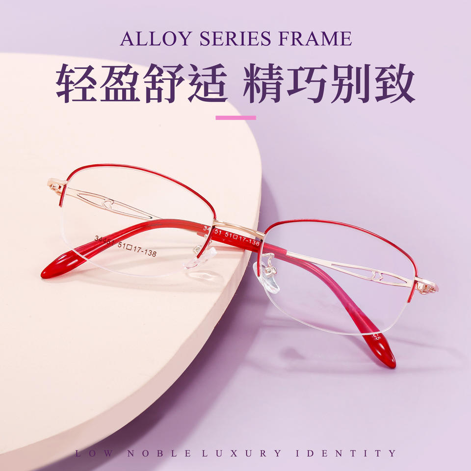 กรอบแว่นตาโลหะผสมสำหรับผู้หญิง ทรงครึ่งวงรี น้ำหนักเบา รุ่น 34451 สำหรับอ่านหนังสือและสายตาสั้น ผลิตที่ตานหยาง