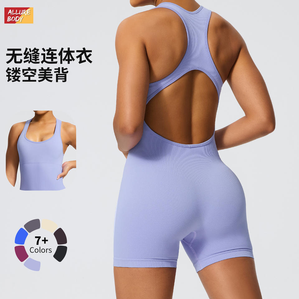 Allure Body Seamless Bodysuit Women Yoga Wear Scoop Neck Solid Color High Elasticity Sports Jumpsuit Tight Fit