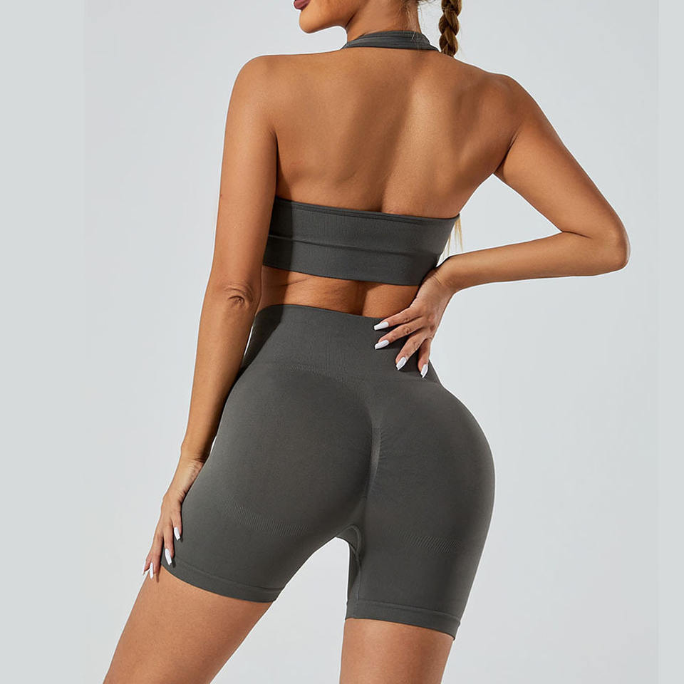 ชุดโยคะไร้รอยต่อ Allure Body เสื้อชั้นในแบบผูกคอเอวสูง กางเกงขาสั้น ชุดออกกำลังกายสำหรับผู้หญิง ชุดวิ่งฟิตเนส