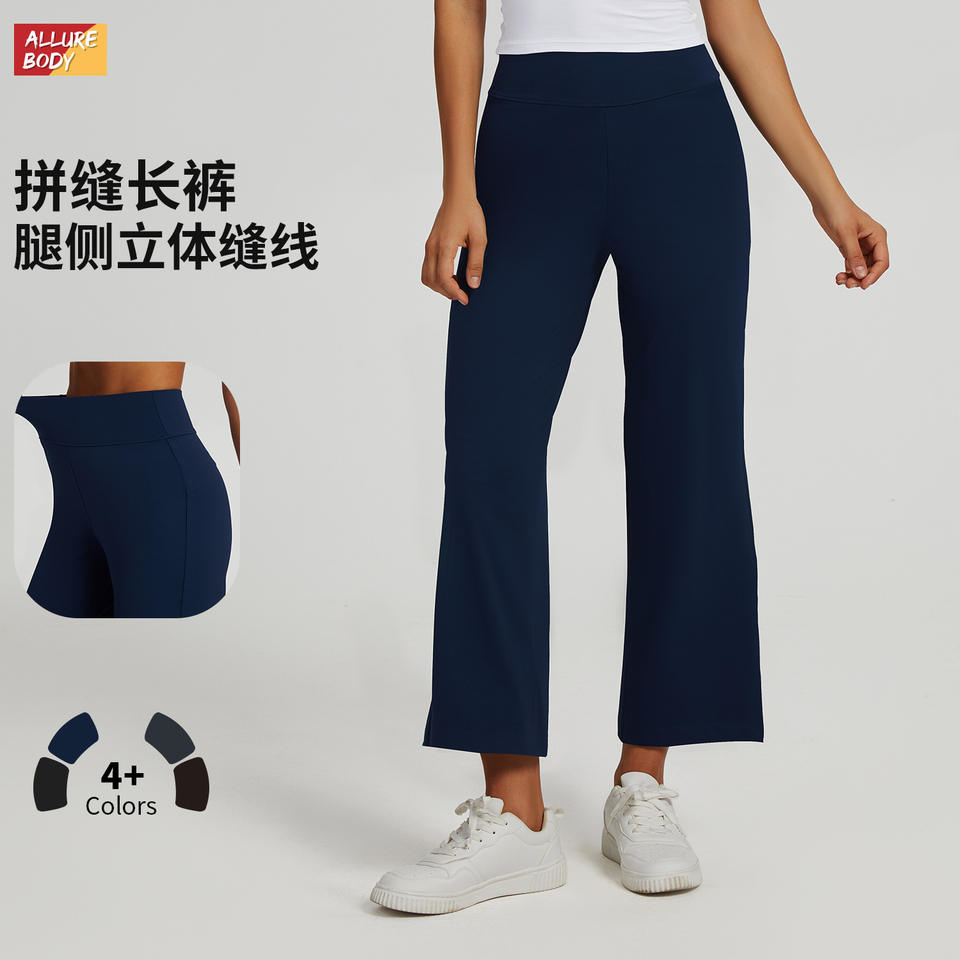 กางเกงโยคะเอวสูงสำหรับผู้หญิง Allure Body สีน้ำเงินเข้ม ทรงหลวม ยืดได้สี่ทิศทาง กางเกงออกกำลังกายสำหรับเล่นกีฬา