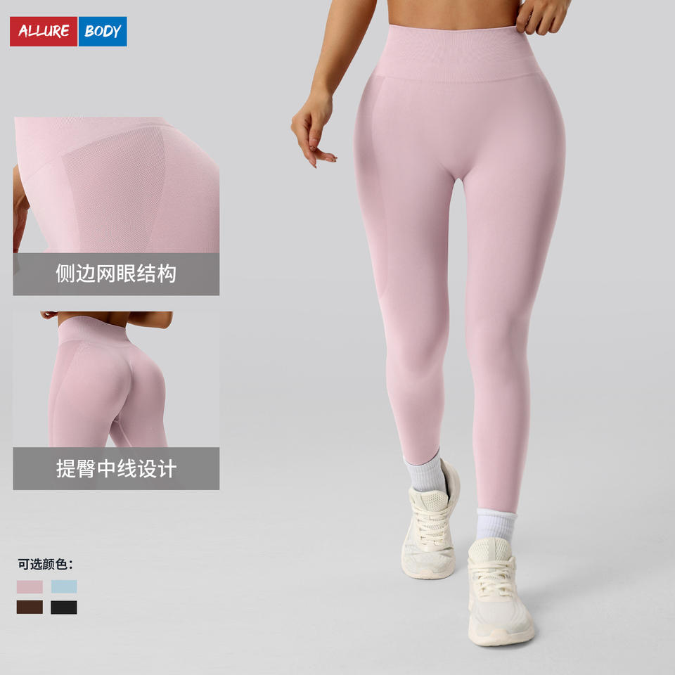 อัลลัวร์ บอดี้ โยคะเลกกิ้งเอวสูงไร้รอยต่อตาข่ายด้านข้างกางเกงออกกำลังกายสำหรับผู้หญิงสีม่วงอ่อนสีฟ้าอ่อนสีน้ำตาลกาแฟสีดำ