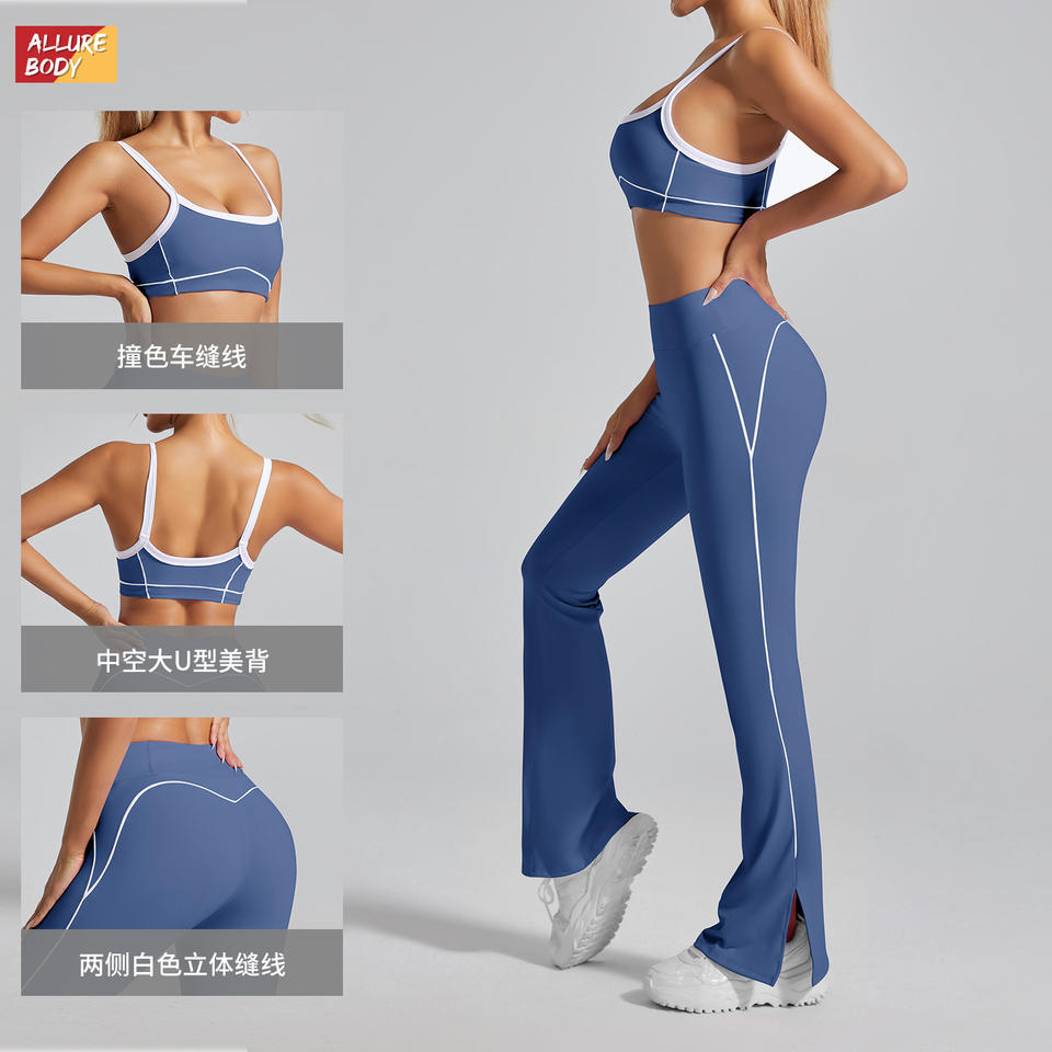 ชุดโยคะ Allure Body สำหรับผู้หญิง 2 ชิ้น สีพื้น ตัดเย็บด้วยด้ายตัดกัน คอวี ยืดหยุ่นสูง เหมาะสำหรับออกกำลังกายในฤดูใบไม้ผลิและฤดูร้อน