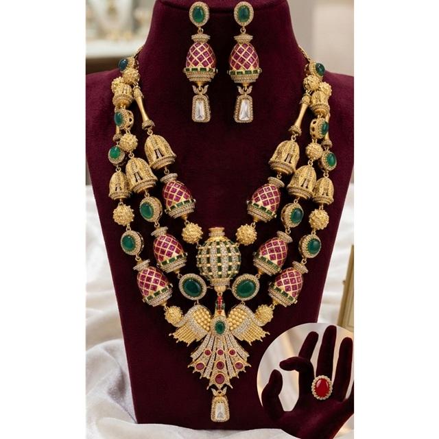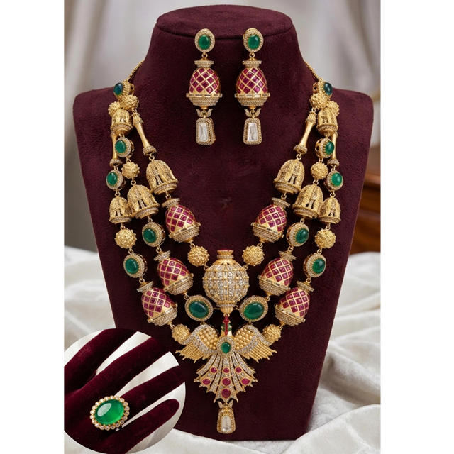 ชุดเครื่องประดับทองชุบคุณภาพพรีเมียมสุดหรู ประดับด้วยลูกปัดทองคำแท้ พร้อมสร้อยคอโมอิสซาไนต์แท้แบบดับเบิ้ล และต่างหู แหวนปรับขนาดได้ เหมาะสำหรับงานแต่งงาน