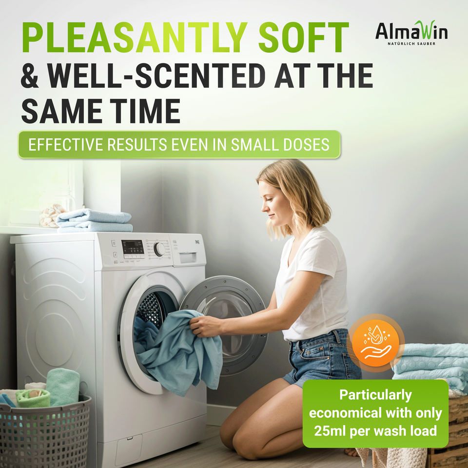 น้ำยาปรับผ้านุ่มอัลมาวิน แบรนด์เอ็กซ์พอร์ต สูตรอีโค กลิ่นส้ม 750 มล. 30 ครั้งใช้ ผสมน้ำมันหอมระเหย น้ำยาซักผ้าชนิดน้ำ