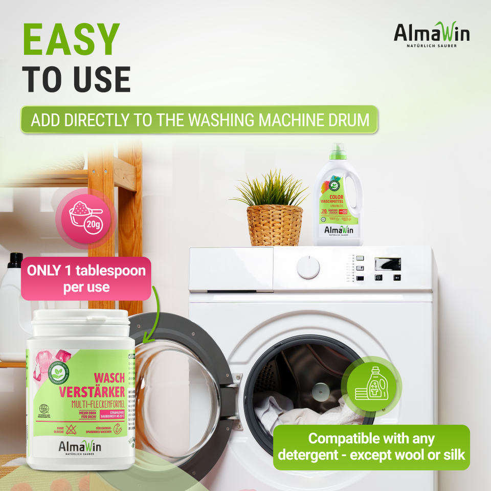 อัลมาวิน แบรนด์ น้ำยาเพิ่มประสิทธิภาพการซักผ้า 240 กรัม ขจัดคราบ ไม่ผสมสารฟอกขาว - น้ำยาเพิ่มประสิทธิภาพการซักผ้า ให้ผ้าสะอาดไร้คราบตั้งแต่ 20 องศาเซลเซียส