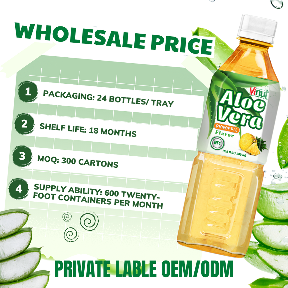 ขวดน้ำว่านหางจระเข้สับปะรด500มล. เครื่องดื่มจากเวียดนามมีสุขภาพดีผลิตตามสั่งผลิตได้ในปริมาณสั่งซื้อขั้นต่ำน้อยได้รับการรับรองแบบเต็มรูปแบบ