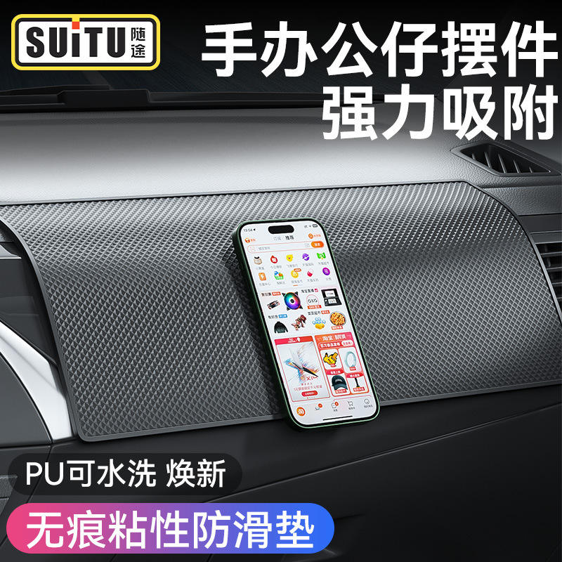 แผ่นรองคอนโซลรถยนต์แบบกันลื่นเคลือบยางสำหรับวางโทรศัพท์ อุปกรณ์เสริมคอนโซลกลาง