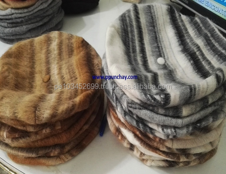 หมวกอัลปาก้าขนนุ่มแบบเบเร่ต์ ปุนชัย เปรู สำหรับทุกเพศทุกวัย ลายทาง สำหรับผู้ใหญ่