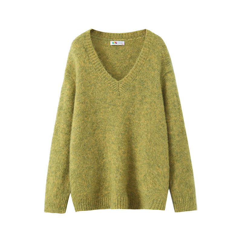 เสื้อสเวตเตอร์คอวีสำหรับผู้หญิงไซส์ใหญ่ ทำจากขนอัลปาก้า สีเขียวมุก ทรงหลวม สวมใส่สบาย เหมาะสำหรับฤดูใบไม้ร่วงและฤดูหนาว