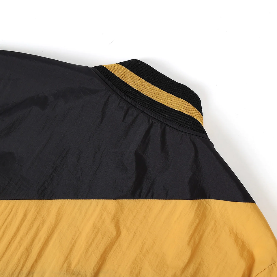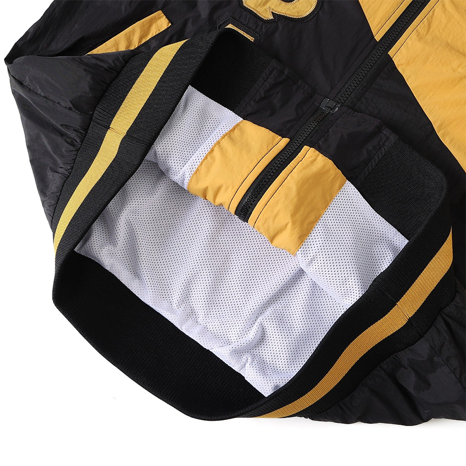 เสื้อแจ็คเก็ตบอมเบอร์แบบซิปเต็มตัว สีดำ-เหลือง รุ่นอัลฟ่า น้ำหนักเบา สไตล์วาร์ซิตี้ กันลม พิมพ์ลาย ไซส์พลัส คอตั้ง แขนเสื้อแบบริบ
