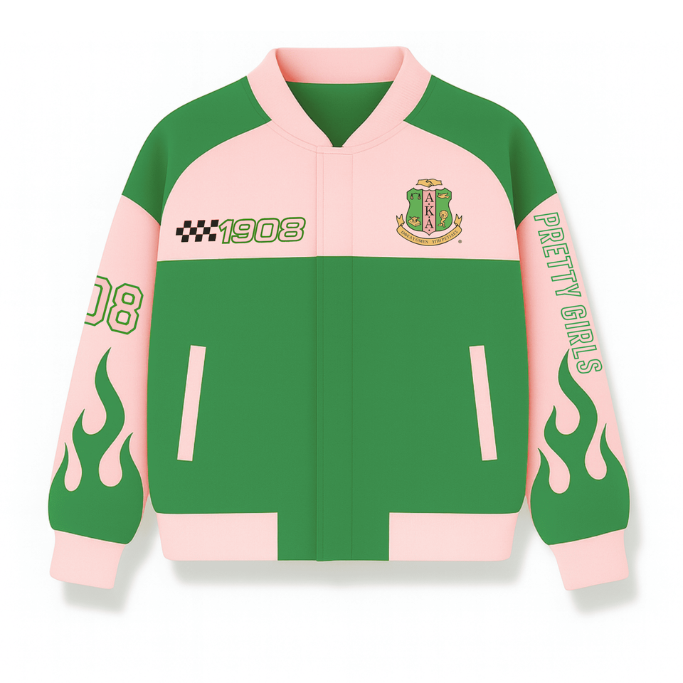 เสื้อแจ็กเก็ตแข่งรถสำหรับผู้หญิง Alpha Kapa Alpha Varsity มีซิป100% ผ้าฝ้าย