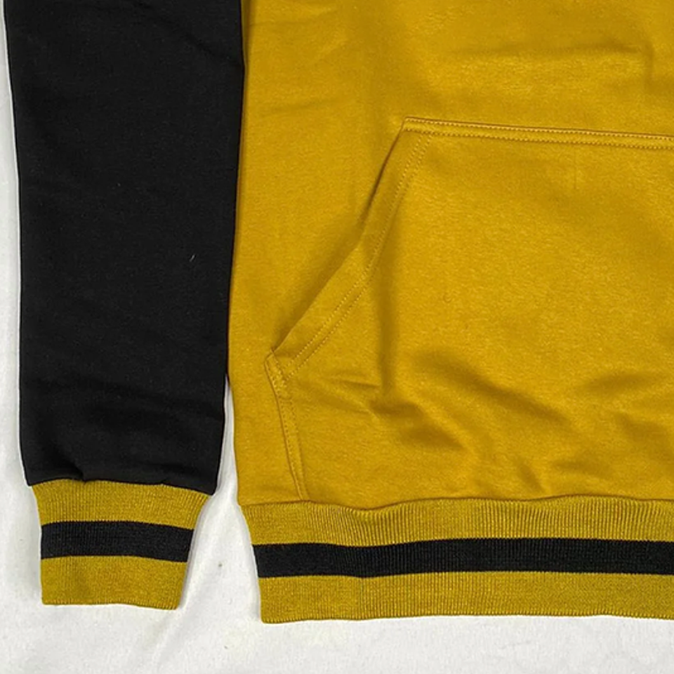 เสื้อกันหนาวอัลฟาทูโทนแขนสีดำและตัวสีทองพร้อมกระเป๋าจิงโจ้มีกระดุมข้อมือเสื้อและผ้าซับเหงื่อ3D ปักสำหรับฤดูหนาว