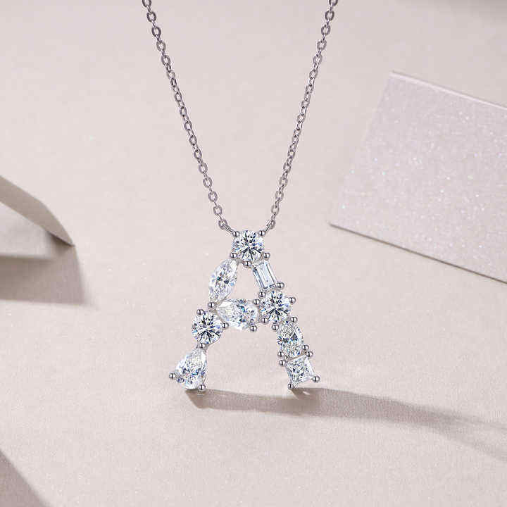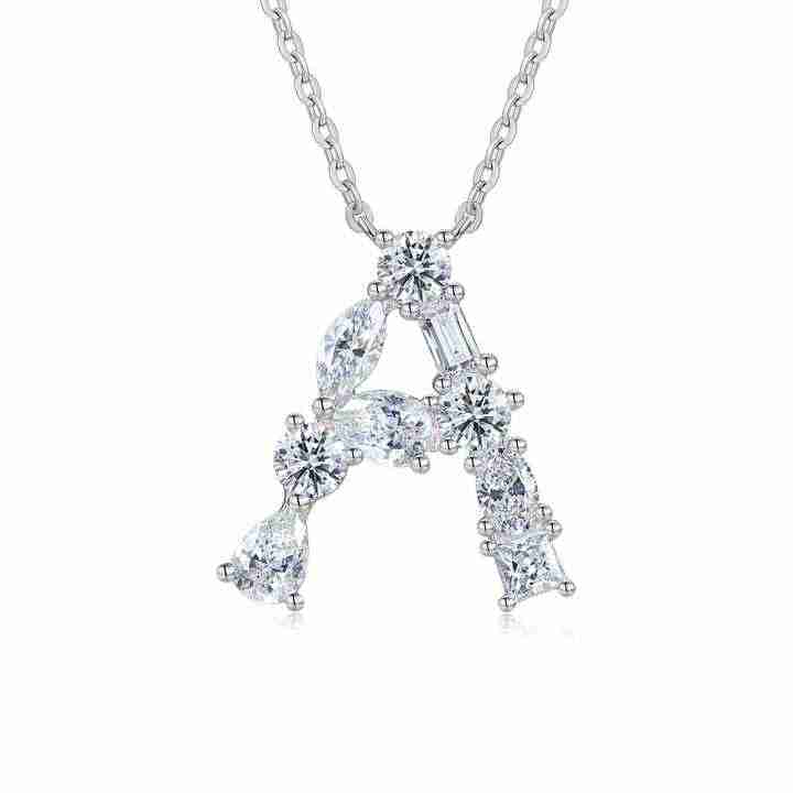 สร้อยคอจี้ตัวอักษร ขายส่ง ชุบเงิน ตัวอักษร A ประดับด้วยพลอยระยิบระยับ ผู้ผลิตและจำหน่ายเครื่องประดับตามสั่ง