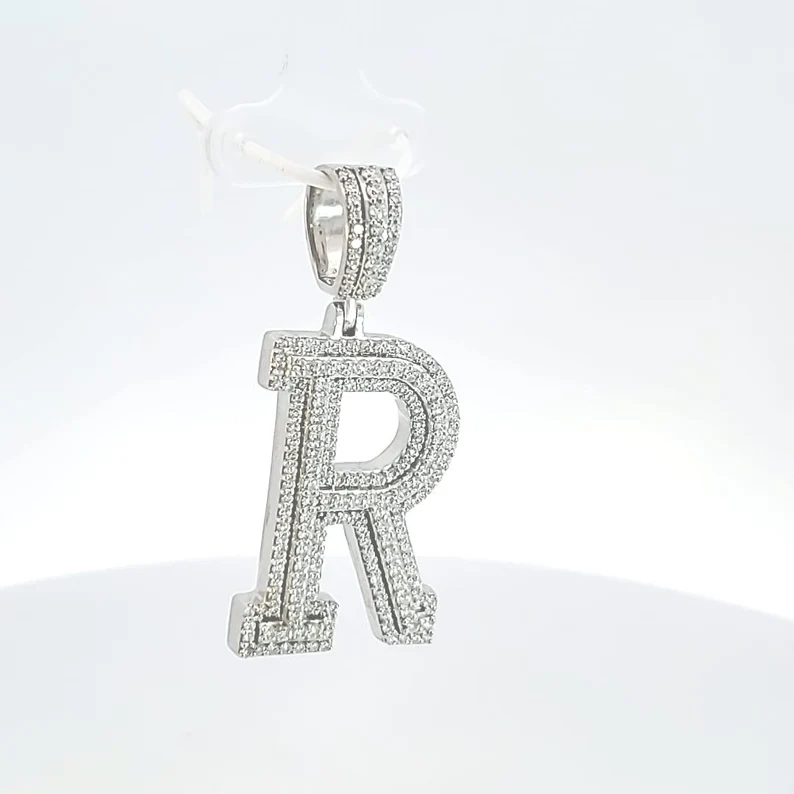 ตัวอักษร "R" จี้ Moissanite จี้ฮิปฮอปเริ่มต้นเครื่องประดับแฟชั่นฮิปฮอปเครื่องประดับ925ชุบเงินสเตอริง