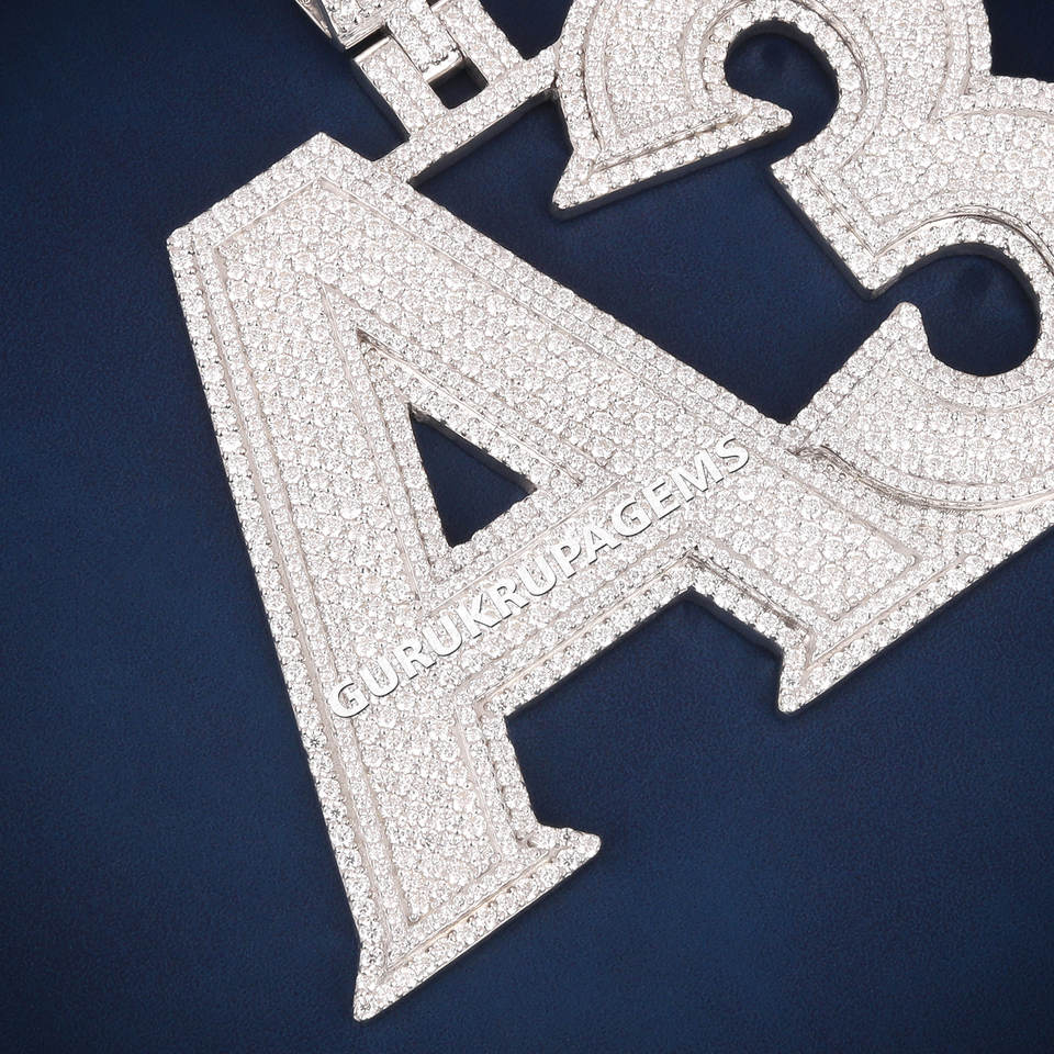 จี้เพชรทรงกลมโมอิส925ตัวอักษรและตัวเลขสีขาวเงินแท้คุณภาพสูง