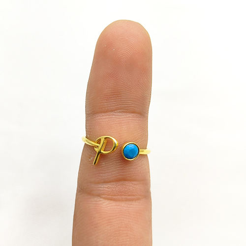 ตัวอักษร P เริ่มต้นด้วยหินเทอร์ควอยซ์ 925 เงินสเตอร์ลิงโลหะชื่อตัวอักษรทอง Vermeil Dainty แหวนเครื่องประดับผู้หญิงแหวนจํานวนมาก