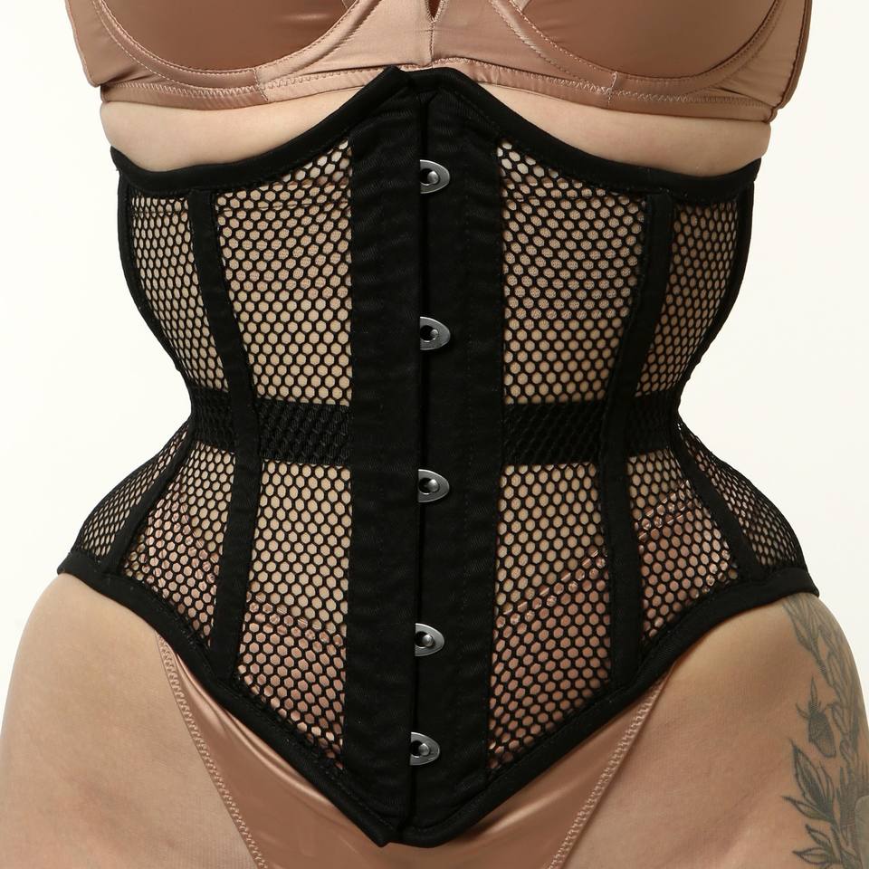 Alphatek สีดำตาข่ายรัดตัวสำหรับผู้หญิง100% คอร์เซ็ทกระชับสัดส่วนตาข่าย