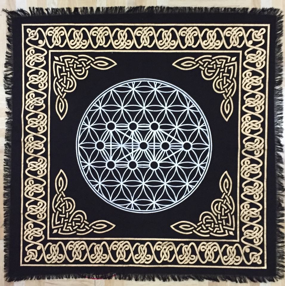 ลายตารางทำจากเส้นใยคอตตอนเมล็ดพืชของชีวิตแบบ metatrons ดอกไม้เรขาคณิตไพ่ทาโรต์กระจายแท่นบูชาผ้าอินเดีย